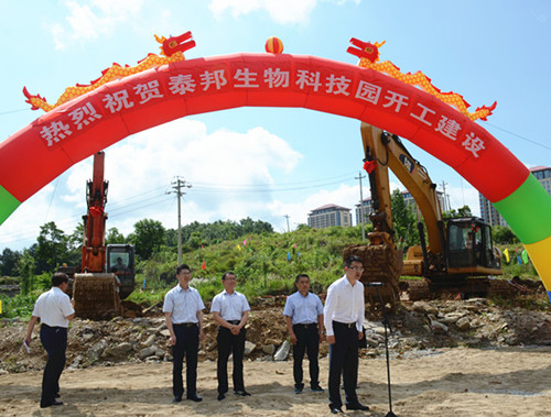 2017年6月8日上午,贵州泰邦举行了简短而隆重的“泰邦生物科技园”动工仪式。花溪区委常委、副区长韩匡时、区园区办副主任徐国敏、区工信局有关领导出席了动工仪式,公司常务副总经理刘欣晏、副总经理陈云华、财务行政总监李云鹏、工程动力总监刘诗平及员工代表参加了仪式,仪式由刘诗平总监主持。